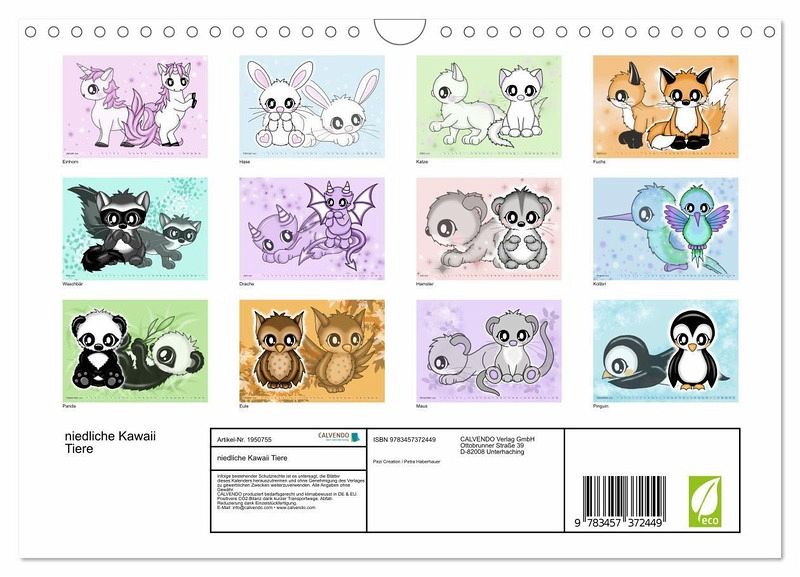 QUALITÄT - Hochwertiger Fotokalender mit 12 wunderschönen Motiven auf lichtbeständigem Bilderdruckpapier, robuste Spiralbindung mit Aufhängebügel.NACHHALTIG - deutliche Abfallreduzierung durch bedarfsgerechte Einzelstückfertigung, umweltfreundliches FSC-zertifiziertes Papier, Produktion in Deutschland, klimabewusste Logistik.PERFEKTES GESCHENK - Kalender für Freunde und Familie, für Kinder und Erwachsene, jung und alt, zu Weihnachten, Geburtstag oder zwischendurch.VIELFALT - Bildkalender in verschiedenen Formaten, z.B. DIN A5, DIN A4, DIN A3 sowie DIN A2. Ob Naturmotiv, Gemälde oder Fotos, ideal für ein persönliches Wohlfühlambiente.Kleine süße Tiere im Kawaii Zeichenstil. von Autor(in): Pezi Creation
