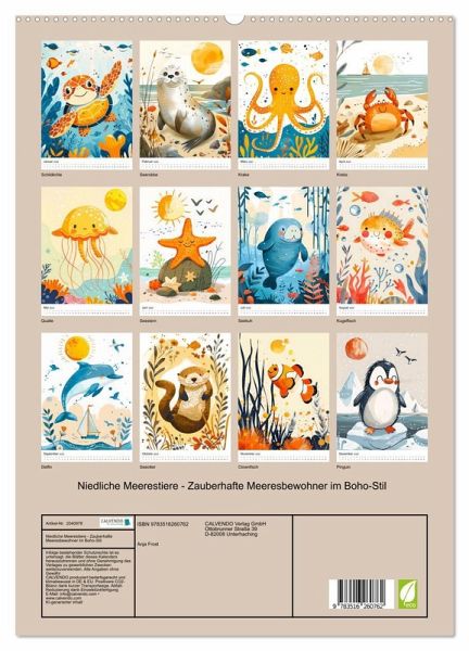 Entdecken Sie die zauberhafte Welt der "Niedlichen Meerestiere - Zauberhafte Meeresbewohner im Boho-Stil". Dieser einzigartige Kalender bringt das Beste des Bohemian-Stils in Ihre vier Wände. Jedes Bild zeigt entzückende KI-generierte Meerestiere wie Seesterne, Kraken und Seeotter in harmonischen Boho-Designs, die durch zarte Pastellfarben und filigrane Muster bestechen. Tauchen Sie ein in die faszinierende Unterwasserwelt, die durch liebevoll gestaltete Bilder dieser außergewöhnlichen Meeresbewohner zum Leben erweckt wird. Perfekt für jeden, der eine entspannte und stilvolle Atmosphäre in seinem Zuhause schaffen möchte.