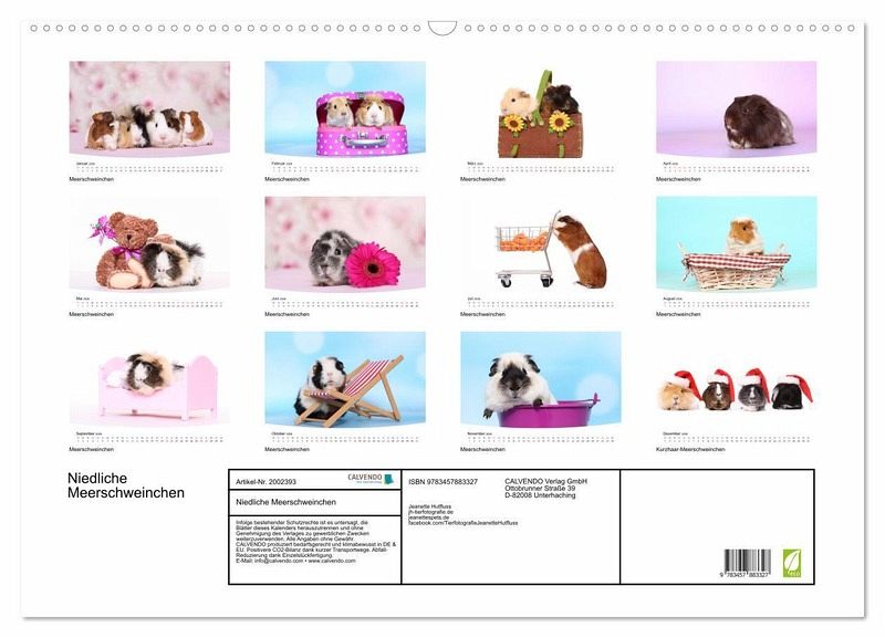 Jeanette Hutfluss hat mit viel Geduld und Liebe einige der drolligen Kerlchen für diesen Kalender fotografiert. Ein "must have" für jeden Meerschweinchen Fan!