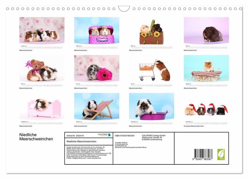 Jeanette Hutfluss hat mit viel Geduld und Liebe einige der drolligen Kerlchen für diesen Kalender fotografiert. Ein "must have" für jeden Meerschweinchen Fan!