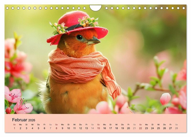 Erleben Sie eine Welt voll flatternder Eleganz und charmantem Gefieder! Dieser Kalender wurde mit Hilfe von KI erstellt und präsentiert zwölf Monate mit duftiger Vogelmode. Lassen Sie sich von den farbenfrohen Designs und dem lieblichen Charme der zauberhaften Models bezirzen, während sie die modische Welt der gefiederten Stars genießen.