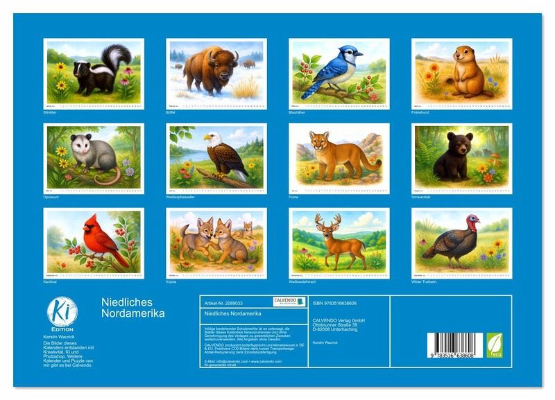 QUALITÄT - Hochwertiger Fotokalender mit 12 wunderschönen Motiven auf lichtbeständigem Bilderdruckpapier, robuste Spiralbindung mit Aufhängebügel.NACHHALTIG - deutliche Abfallreduzierung durch bedarfsgerechte Einzelstückfertigung, umweltfreundliches FSC-zertifiziertes Papier, Produktion in Deutschland, klimabewusste Logistik.PERFEKTES GESCHENK - Kalender für Freunde und Familie, für Kinder und Erwachsene, jung und alt, zu Weihnachten, Geburtstag oder zwischendurch.VIELFALT - Bildkalender in verschiedenen Formaten, z.B. DIN A5, DIN A4, DIN A3 sowie DIN A2. Ob Naturmotiv, Gemälde oder Fotos, ideal für ein persönliches Wohlfühlambiente.Entdecke die freundliche Seite wilder nordamerikanischer Tiere in detailreichen, liebevoll gestalteten Illustrationen, die Groß und Klein begeistern von Autor(in): Kerstin Waurick