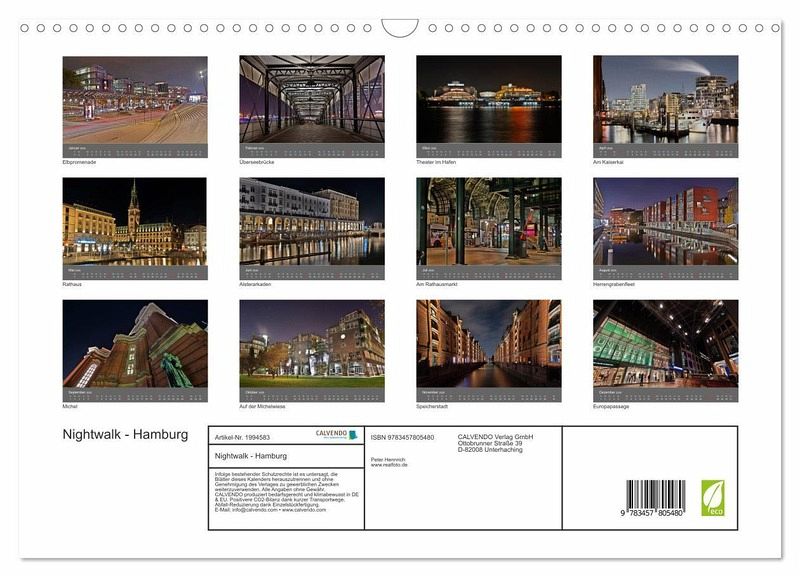 QUALITÄT - Hochwertiger Fotokalender mit 12 wunderschönen Motiven auf lichtbeständigem Bilderdruckpapier, robuste Spiralbindung mit Aufhängebügel.NACHHALTIG - deutliche Abfallreduzierung durch bedarfsgerechte Einzelstückfertigung, umweltfreundliches FSC-zertifiziertes Papier, Produktion in Deutschland, klimabewusste Logistik.PERFEKTES GESCHENK - Kalender für Freunde und Familie, für Kinder und Erwachsene, jung und alt, zu Weihnachten, Geburtstag oder zwischendurch.VIELFALT - Bildkalender in verschiedenen Formaten, z.B. DIN A5, DIN A4, DIN A3 sowie DIN A2. Ob Naturmotiv, Gemälde oder Fotos, ideal für ein persönliches Wohlfühlambiente.Nächtlicher Spaziergang durch Hamburg von Autor(in): Peter Hennrich