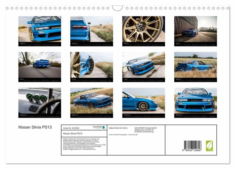 In diesem Kalender finden Sie Hochauflösende Bilder eines Drift Autos, mit knapp 300PS auf einem 4Zylinder Turbo Motor der 2L umfasst, fällt das Auto nicht nur durch seine Farbe, sondern auch durch seine Leistung auf.