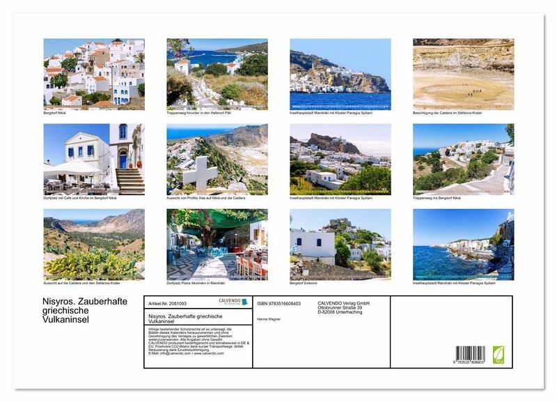 iches FSC-zertifiziertes Papier, Produktion in Deutschland, klimabewusste Logistik.PERFEKTES GESCHENK - Kalender für Freunde und Familie, für Kinder und Erwachsene, jung und alt, zu Weihnachten, Geburtstag oder zwischendurch.VIELFALT - Bildkalender in verschiedenen Formaten, z.B. DIN A5, DIN A4, DIN A3 sowie DIN A2. Ob Naturmotiv, Gemälde oder Fotos, ideal für ein persönliches Wohlfühlambiente.Stimmungsvolle Fotografien zeigen die Vulkaninsel Nisyros mit ihrer ursprünglichen Natur, charakteristischen Dörfern und beeindruckenden Kraterlandschaften. von Autor(in): Hanna Wagner
