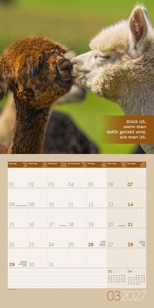 Hochwertiger Art12-Collection-BroschürenkalenderLama-Kalender im schlanken Hochformat: 30x30 cm, (aufgeklappt 30x60 cm)Kalendarium mit Platz für Notizen, inklusive JahresplanerAuf Papier aus nachhaltiger Forstwirtschaft in Deutschland produziertLeistet einen Beitrag zum Ackermann Firmenwald4-sprachiges Kalendarium: Deutsch, Englisch, Französisch, Italienisch
