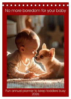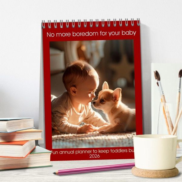 Discover the ultimate annual calendar to fight boredom in babies and toddlers. With our unique No more boredom for your baby calendar with ai generated pictures, we bring fun and laughter into your everyday life. Every month you can expect creative, humorous ideas that will turn time with your little one into an unforgettable experience. From fun dress-up games and exciting discovery tours in the living room. This calendar is full of inspiration that will awaken your child's curiosity and promote their development at the same time. Perfect for parents who want to make the most of every day with their baby or toddler. Get ready for a year full of laughter, play and fun. With our calendar, every day is a new adventure. No more boredom, just precious, happy moments with your little one.