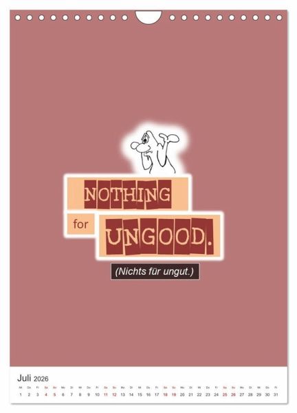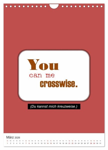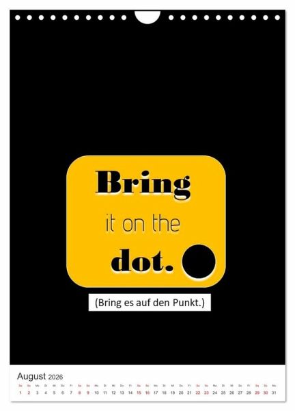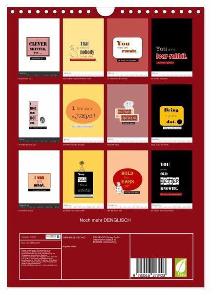 QUALITÄT - Hochwertiger Fotokalender mit 12 wunderschönen Motiven auf lichtbeständigem Bilderdruckpapier, robuste Spiralbindung mit Aufhängebügel.NACHHALTIG - deutliche Abfallreduzierung durch bedarfsgerechte Einzelstückfertigung, umweltfreundliches FSC-zertifiziertes Papier, Produktion in Deutschland, klimabewusste Logistik.PERFEKTES GESCHENK - Kalender für Freunde und Familie, für Kinder und Erwachsene, jung und alt, zu Weihnachten,Geburtstag oder zwischendurch.VIELFALT - Bildkalender in verschiedenen Formaten, z.B. DIN A5, DIN A4, DIN A3 sowie DIN A2. Ob Naturmotiv, Gemälde oder Fotos, ideal für ein persönliches Wohlfühlambiente.Ein TYPO-Kalender mit deutschen Redewendungen 1 : 1 ins Englische übersetzt ... von Autor(in): Angelika Keller