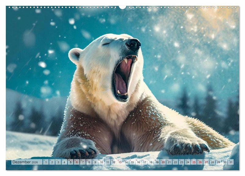 Dezember: Der Eisbär ruht sich aus im Schnee