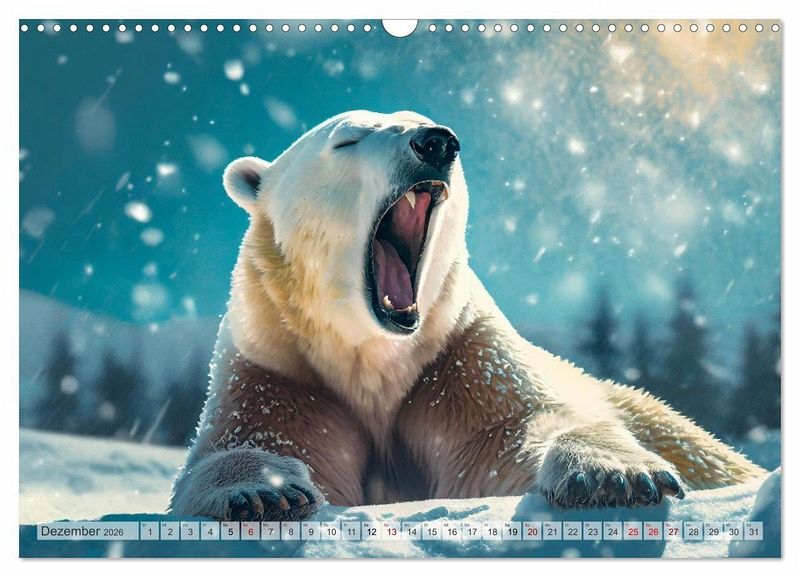 Dezember: Der Eisbär ruht sich aus im Schnee
