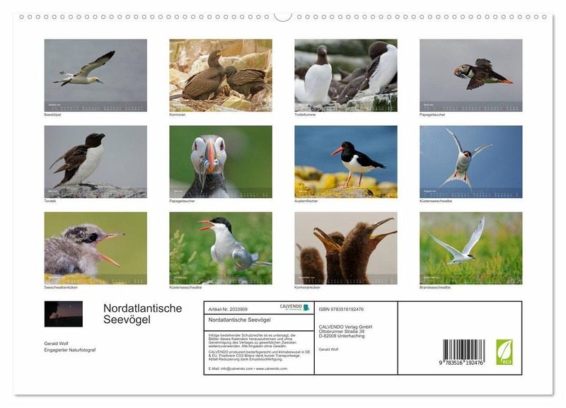 PREMIUM-LINIE - Brillanter Fotokalender mit 12 wunderschönen Motiven, Kunstdruck in Hochglanz in Museumsqualität.QUALITÄT - edle Materialien, stabile Rückwand mit 2 innovativen Einstecktaschen für eine optimale Präsentation an der Wand.NACHHALTIG - deutliche Abfallreduzierung durch bedarfsgerechte Einzelstückfertigung, umweltfreundliches FSC-zertifiziertes Papier, Produktion in Deutschland, klimabewusste Logistik.PERFEKTES GESCHENK - Kalender für Freunde und Familie, für Kinder und Erwachsene, jung und alt, zu Weihnachten, Geburtstag oder zwischendurch.Faszinierende Portraits nordatlantischer Seevögel von Autor(in): Gerald Wolf