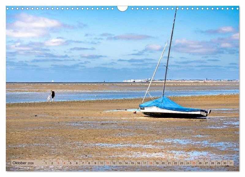 Oktober: Segelboot im Watt mit Blick nach Norderney