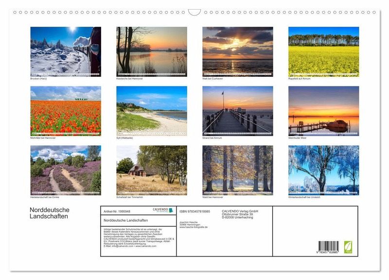 QUALITÄT - Hochwertiger Fotokalender mit 12 wunderschönen Motiven auf lichtbeständigem Bilderdruckpapier, robuste Spiralbindung mit Aufhängebügel.NACHHALTIG - deutliche Abfallreduzierung durch bedarfsgerechte Einzelstückfertigung, umweltfreundliches FSC-zertifiziertes Papier, Produktion in Deutschland, klimabewusste Logistik.PERFEKTES GESCHENK - Kalender für Freunde und Familie, für Kinder und Erwachsene, jung und alt, zu Weihnachten, Geburtstag oder zwischendurch.VIELFALT - Bildkalender in verschiedenen Formaten, z.B. DIN A5, DIN A4, DIN A3 sowie DIN A2. Ob Naturmotiv, Gemälde oder Fotos, ideal für ein persönliches Wohlfühlambiente.Norddeutsche Landschaften von der Küste bis zum Harz von Autor(in): Joachim Hasche
