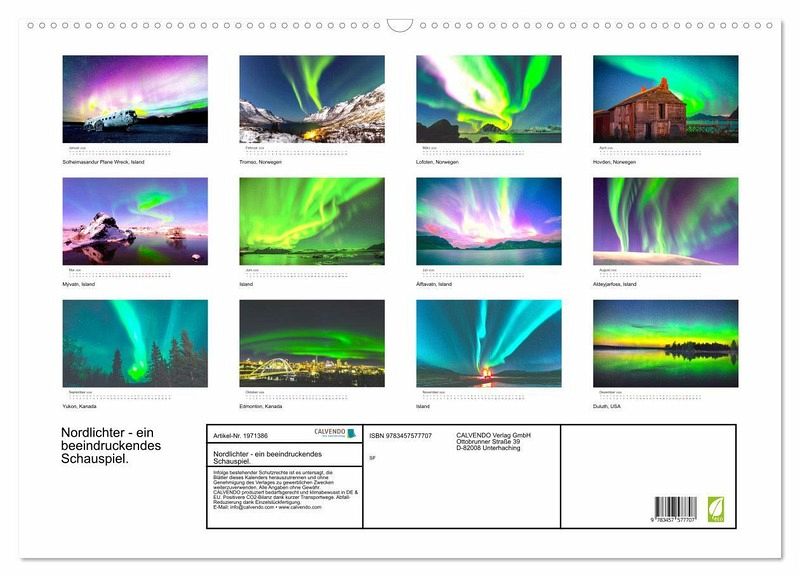 Die Polarlichter laden jeden zum träumen ein. Dieser Kalender zeigt 12 atemberaubende Aufnahmen der schönen Nordlichter.