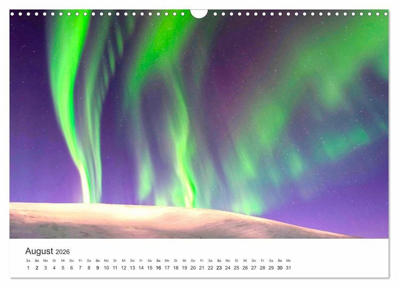 Die Polarlichter laden jeden zum träumen ein. Dieser Kalender zeigt 12 atemberaubende Aufnahmen der schönen Nordlichter.