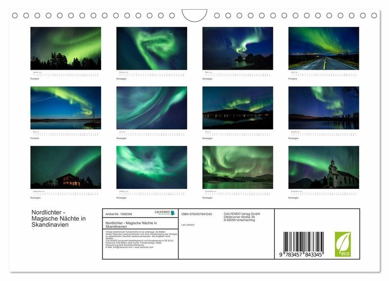 QUALITÄT - Hochwertiger Fotokalender mit 12 wunderschönen Motiven auf lichtbeständigem Bilderdruckpapier, robuste Spiralbindung mit Aufhängebügel.NACHHALTIG - deutliche Abfallreduzierung durch bedarfsgerechte Einzelstückfertigung, umweltfreundliches FSC-zertifiziertes Papier, Produktion in Deutschland, klimabewusste Logistik.PERFEKTES GESCHENK - Kalender für Freunde und Familie, für Kinder und Erwachsene, jung und alt, zu Weihnachten, Geburtstag oder zwischendurch.VIELFALT - Bildkalender in verschiedenen Formaten, z.B. DIN A5, DIN A4, DIN A3 sowie DIN A2. Ob Naturmotiv, Gemälde oder Fotos, ideal für ein persönliches Wohlfühlambiente.Faszinierende Nachtaufnahmen aus Skandinavien, die Aurora in ihrer ganzen Schönheit. von Autor(in): Lain Jackson