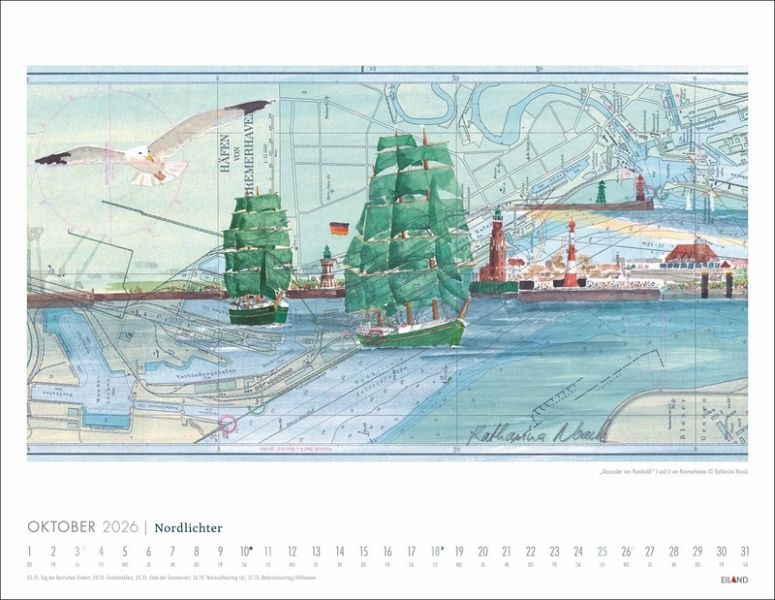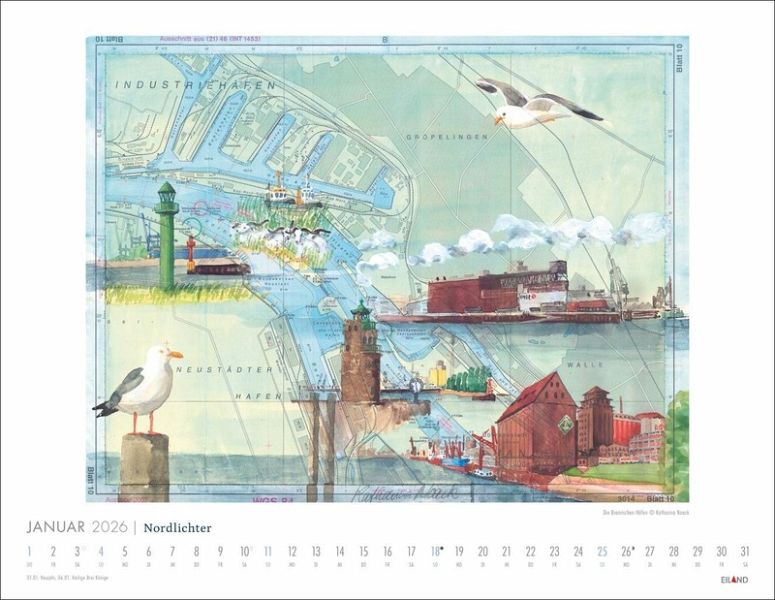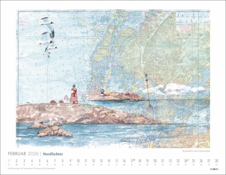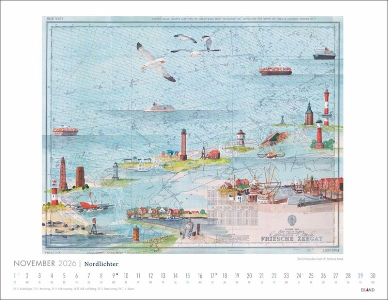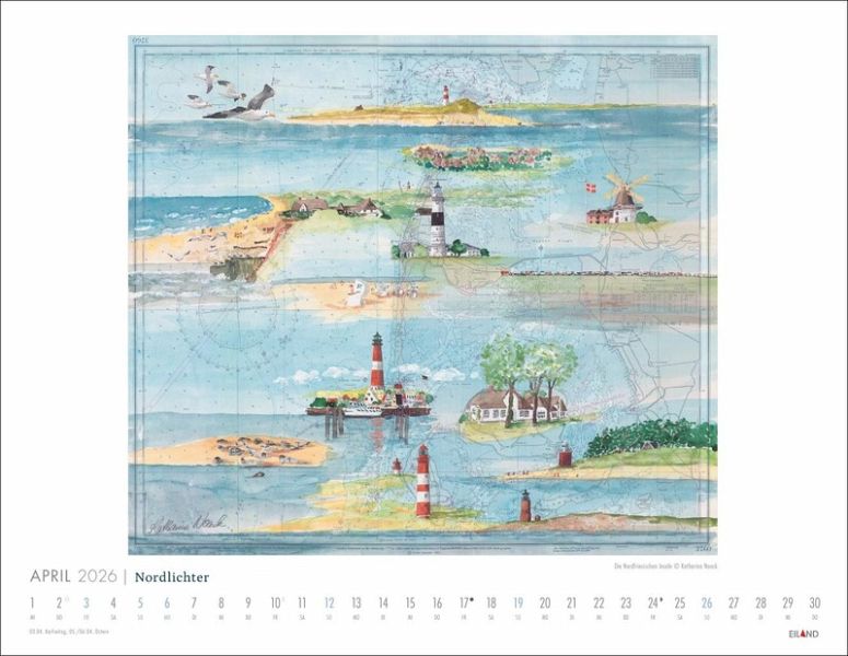 - Die Seglerin und Künstlerin Katharina Noack malt bevorzugt auf gebrauchten Seekarten - 12 ausgewählte Beispiele ihrer Kunst schmücken diesen Wandkalender- Detaillierte Malerei vor dem Hintergrund nautischer Navigationshilfen: Kunst und Meer treffen in diesem Bildkalender 2026 auf ganz besondere Weise zusammen- Wellen, Leuchttürme und Sanddünen werden von diesem Kalender 2026 großartig in Szene gesetzt: ein maritimes Geschenk, an dem Ihre Lieben viel Freude haben werden- Zaubert ein Meeresrauschen in Ihr Ohr: Kunst-Wandkalender 2026, der Sie vom nächsten Urlaub träumen lässt- Kunst und Meer: Die Kalender von Eiland im Athesia Kalenderverlag riechen beinahe nach Salzwasser!
