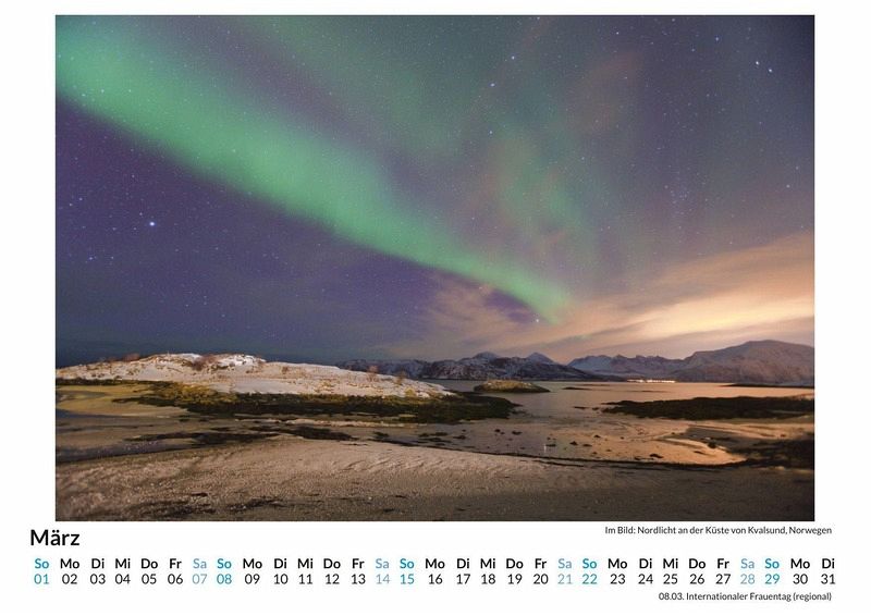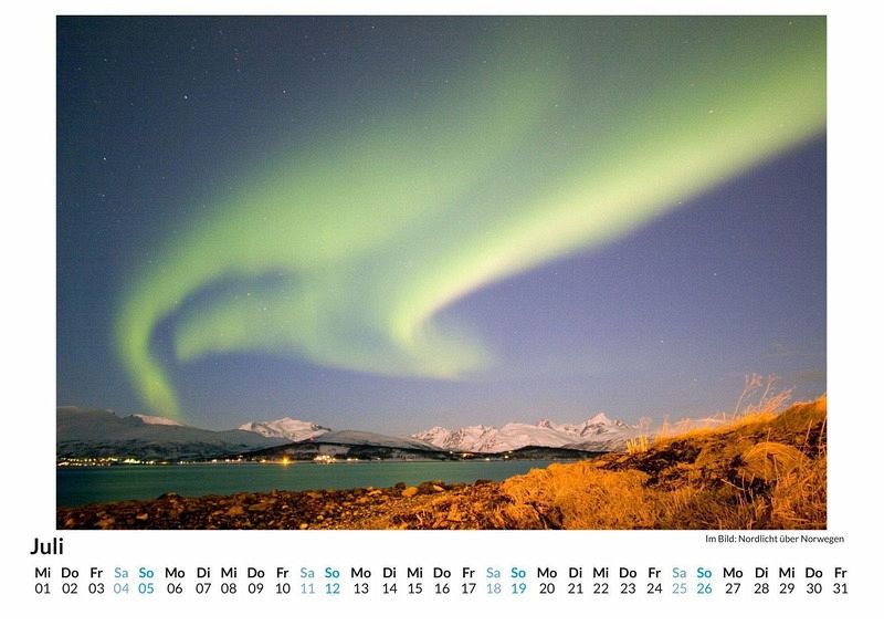 Erleben Sie das magische Naturschauspiel der Nordlichter jeden Monat neu! Unser hochwertiger Wandkalender entführt Sie mit 12 atemberaubenden Motiven in die faszinierende Welt der Polarlichter. Gedruckt auf lichtbeständigem Bilderdruckpapier, kommen die leuchtenden Farben besonders intensiv zur Geltung. Jeder Kalender wird in Deutschland auf FSC-zertifiziertem Papier produziert - für ein nachhaltiges und umweltfreundliches Produkt. Lassen Sie sich von der Schönheit der Natur verzaubern und holen Sie sich ein Stück Polarlicht in Ihr Zuhause. Perfekt als Geschenk oder für die eigene Wand - ein Muss für Naturliebhaber! Hochwertig Erleben Sie ein Jahr voller Eleganz mit unserem Premium-Fotokalender. Jedes der 12 Motive ist auf hochwertigem, lichtbeständigem Bilderdruckpapier gedruckt, um die Lebendigkeit jedes Bildes zu bewahren. Die robuste Spiralbindung gewährleistet Langlebigkeit und einfache Handhabung. Nachhaltig Unser Engagement für die Umwelt spiegelt sich in jedem Exemplar wider. Durch die Produktion auf Abruf reduzieren wir signifikant unseren Abfall. Wir verwenden ausschließlich umweltfreundliches, FSC-zertifiziertes Papier. Stolz gefertigt in Deutschland, achten wir bei unserer Logistik auf Klimaschutz, um unseren ökologischen Fußabdruck zu minimieren. Das ideale Geschenk Dieser Kalender ist das perfekte Präsent für jeden Anlass - ob Weihnachten, Geburtstage oder einfach als liebevolle Aufmerksamkeit zwischendurch. Geeignet für Freunde, Familie, Kinder und Erwachsene gleichermaßen, bereichert er jedes Zuhause mit seiner Vielfalt und Schönheit, unabhängig vom Alter der Beschenkten.