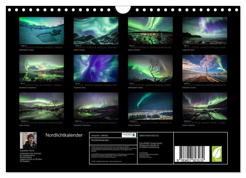 QUALITÄT - Hochwertiger Fotokalender mit 12 wunderschönen Motiven auf lichtbeständigem Bilderdruckpapier, robuste Spiralbindung mit Aufhängebügel.NACHHALTIG - deutliche Abfallreduzierung durch bedarfsgerechte Einzelstückfertigung, umweltfreundliches FSC-zertifiziertes Papier, Produktion in Deutschland, klimabewusste Logistik.PERFEKTES GESCHENK - Kalender für Freunde und Familie, für Kinder und Erwachsene, jung und alt, zu Weihnachten, Geburtstag oder zwischendurch.VIELFALT - Bildkalender in verschiedenen Formaten, z.B. DIN A5, DIN A4, DIN A3 sowie DIN A2. Ob Naturmotiv, Gemälde oder Fotos, ideal für ein persönliches Wohlfühlambiente.Nordlichter, aufgenommen in Nordnorwegen von Autor(in): Sebastian Worm