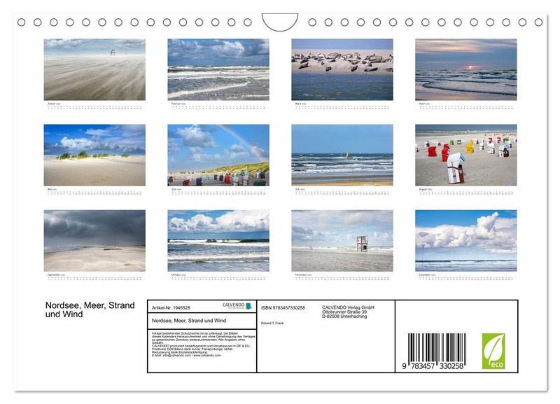 QUALITÄT - Hochwertiger Fotokalender mit 12 wunderschönen Motiven auf lichtbeständigem Bilderdruckpapier, robuste Spiralbindung mit Aufhängebügel.NACHHALTIG - deutliche Abfallreduzierung durch bedarfsgerechte Einzelstückfertigung, umweltfreundliches FSC-zertifiziertes Papier, Produktion in Deutschland, klimabewusste Logistik.PERFEKTES GESCHENK - Kalender für Freunde und Familie, für Kinder und Erwachsene, jung und alt, zu Weihnachten, Geburtstag oder zwischendurch.VIELFALT - Bildkalender in verschiedenen Formaten, z.B. DIN A5, DIN A4, DIN A3 sowie DIN A2. Ob Naturmotiv, Gemälde oder Fotos, ideal für ein persönliches Wohlfühlambiente.Impressionen von der Nordsee in zwölf Bildern. von Autor(in): Roland T. Frank