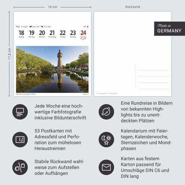 - Wattenmeer und mehr: Die Nordsee im neuen Fotokalender 2026- Die raue Schönheit der deutschen Nordseeküste entdecken: Woche für Woche beeindruckende Landschaftsfotografie von renommierten Fotografen -Weht wie eine frische Meeres-Brise durch das Office: Als Tischkalender oder Aufstellkalender nutzbar im kompakten 16 x 17,5 cm-Format - Magische Momente teilen: Der Nordseekalender mit einfach heraustrennbaren Postkarten zum Sammeln und Verschicken- Eine Reise zu den wild-romantischsten Zielen der Welt: Die Sehnsuchts-Kalender von Harenberg im Athesia Kalenderverlag