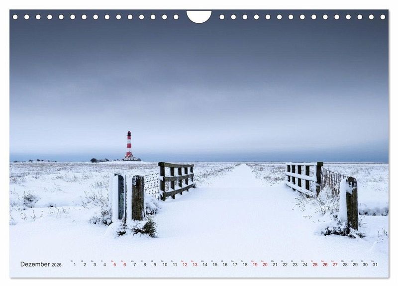 Dezember: Verschneiter Leuchtturm Westerheversand