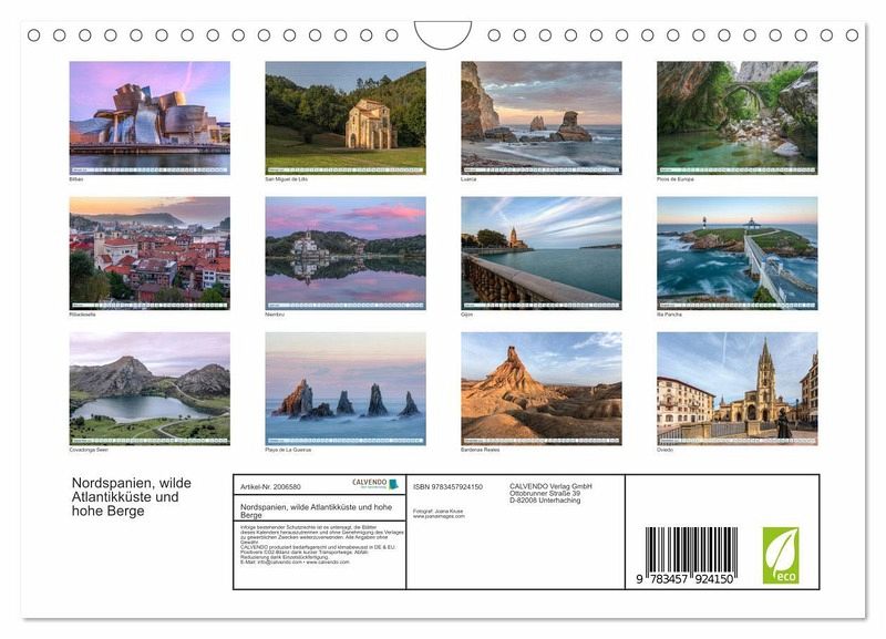 Zwischen Atlantikküste und dem Gebirge Picos de Europa findet man in Nordspanien eine atemberaubende Landschaft. Schroffe Felsen im Ozean, vom Wind geformte Sandberge, verzauberte Gebirgsseen und -flüsse und kulturreiche Städte mit bunten Häusern. Wer das ursprüngliche, nicht touristische Spanien sucht, der sollte in den Norden fahren. Lassen Sie sich mit diesem Fotokalender inspirieren.