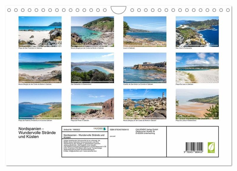 QUALITÄT - Hochwertiger Fotokalender mit 12 wunderschönen Motiven auf lichtbeständigem Bilderdruckpapier, robuste Spiralbindung mit Aufhängebügel.NACHHALTIG - deutliche Abfallreduzierung durch bedarfsgerechte Einzelstückfertigung, umweltfreundliches FSC-zertifiziertes Papier, Produktion in Deutschland, klimabewusste Logistik.PERFEKTES GESCHENK - Kalender für Freunde und Familie, für Kinder und Erwachsene, jung und alt, zu Weihnachten, Geburtstag oder zwischendurch.VIELFALT - Bildkalender in verschiedenen Formaten, z.B. DIN A5, DIN A4, DIN A3 sowie DIN A2. Ob Naturmotiv, Gemälde oder Fotos, ideal für ein persönliches Wohlfühlambiente.Der Kalender nimmt Sie mit zu den wundervollen Stränden und Küsten in Nordspanien. von Autor(in): Fabian Junge