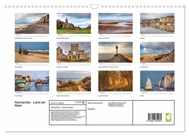 QUALITÄT - Hochwertiger Fotokalender mit 12 wunderschönen Motiven auf lichtbeständigem Bilderdruckpapier, robuste Spiralbindung mit Aufhängebügel.NACHHALTIG - deutliche Abfallreduzierung durch bedarfsgerechte Einzelstückfertigung, umweltfreundliches FSC-zertifiziertes Papier, Produktion in Deutschland, klimabewusste Logistik.PERFEKTES GESCHENK - Kalender für Freunde und Familie, für Kinder und Erwachsene, jung und alt, zu Weihnachten, Geburtstag oder zwischendurch.VIELFALT - Bildkalender in verschiedenen Formaten, z.B. DIN A5, DIN A4, DIN A3 sowie DIN A2. Ob Naturmotiv, Gemälde oder Fotos, ideal für ein persönliches Wohlfühlambiente.Das Meer prägt in vielfältiger Weise die Landschaft der Normandie. von Autor(in): Anne Berger
