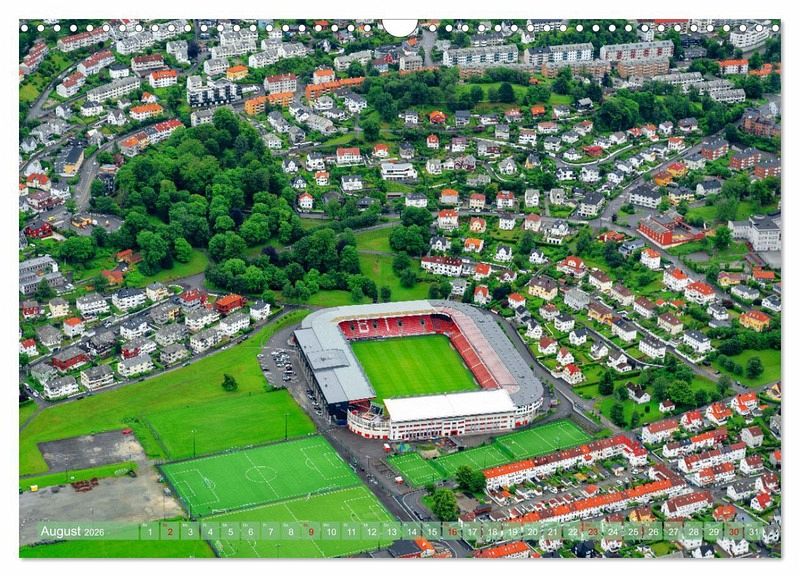 August: Norwegische Stadt Bergen und das Brann-Stadion, eingebettet in eine grüne Landschaft