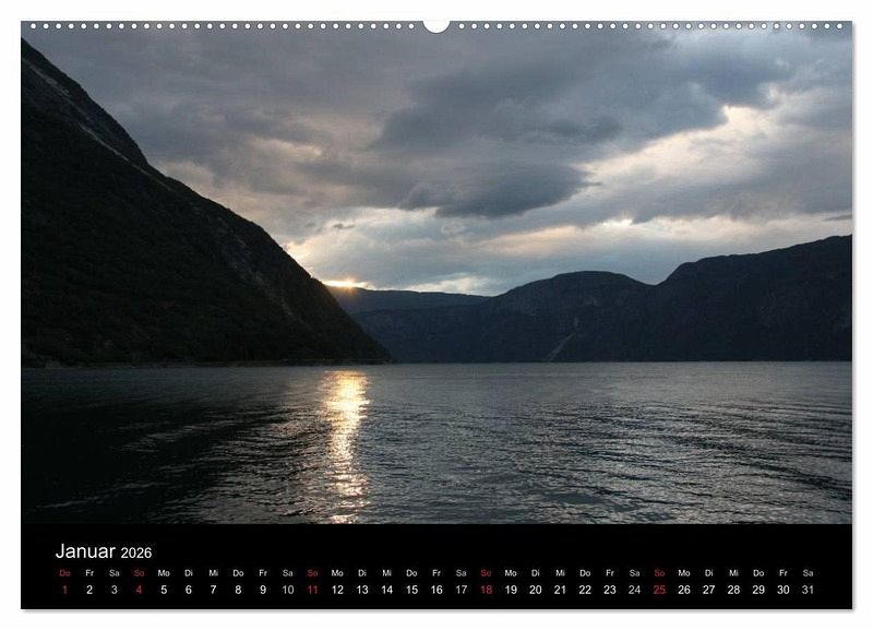 Lassen Sie sich verzaubern, von wunderschönen Landschaftsaufnahmen und wunderbaren Naturschauspielen. In diesem Kalender finden Sie eindrucksvolle Aufnahmen aus dem wunderschönen Süden Norwegens. Er enthält unter anderem faszinierende Fotografien von der schönen Stadt Stavanger, der Heidelandschaft in der Küstenregion, dem Gletscher Hardangerjøkulen und dem Wasserfall Steindalsfossen. Ob bedrohlich bewölkt, schön sonnig oder Sonnenuntergänge - es ist für jeden etwas dabei.