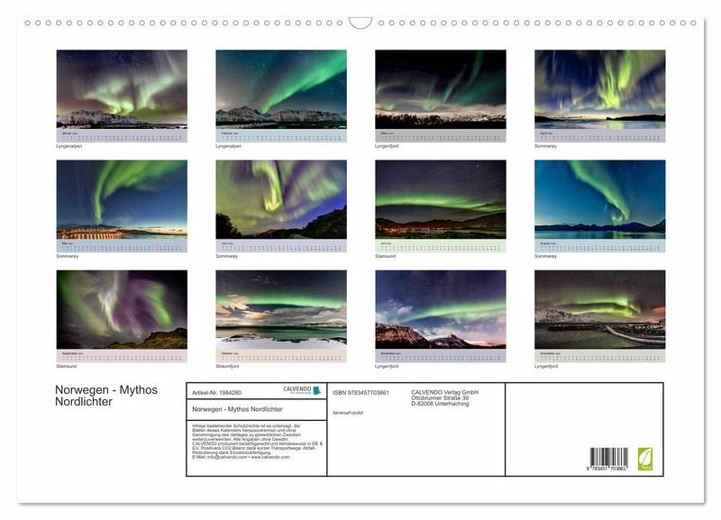 QUALITÄT - Hochwertiger Fotokalender mit 12 wunderschönen Motiven auf lichtbeständigem Bilderdruckpapier, robuste Spiralbindung mit Aufhängebügel.NACHHALTIG - deutliche Abfallreduzierung durch bedarfsgerechte Einzelstückfertigung, umweltfreundliches FSC-zertifiziertes Papier, Produktion in Deutschland, klimabewusste Logistik.PERFEKTES GESCHENK - Kalender für Freunde und Familie, für Kinder und Erwachsene, jung und alt, zu Weihnachten, Geburtstag oder zwischendurch.VIELFALT - Bildkalender in verschiedenen Formaten, z.B. DIN A5, DIN A4, DIN A3 sowie DIN A2. Ob Naturmotiv, Gemälde oder Fotos, ideal für ein persönliches Wohlfühlambiente.Nordlichter, mythische Bilder von diesem großartigen Naturphänomen von Autor(in): Andreas Kretschmar