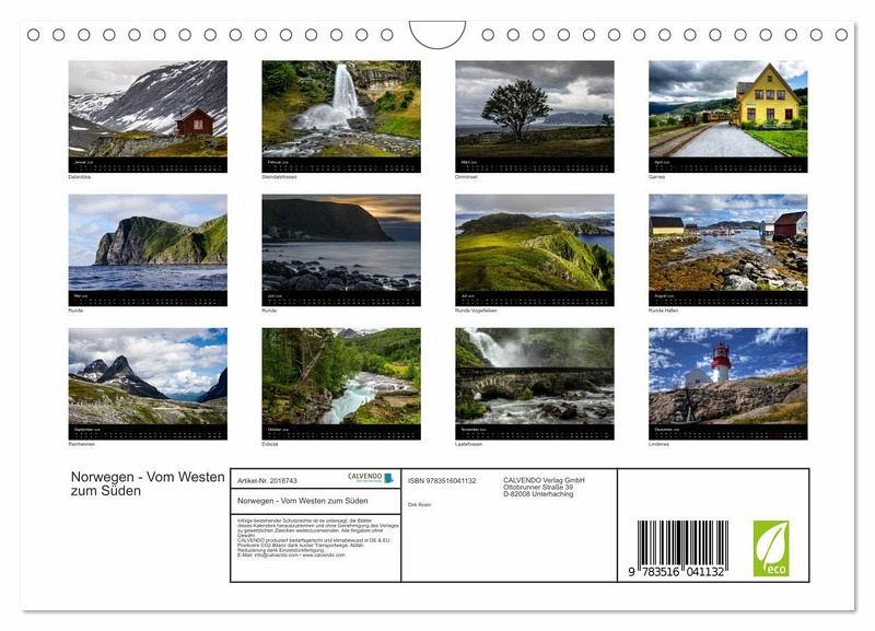 QUALITÄT - Hochwertiger Fotokalender mit 12 wunderschönen Motiven auf lichtbeständigem Bilderdruckpapier, robuste Spiralbindung mit Aufhängebügel.NACHHALTIG - deutliche Abfallreduzierung durch bedarfsgerechte Einzelstückfertigung, umweltfreundliches FSC-zertifiziertes Papier, Produktion in Deutschland, klimabewusste Logistik.PERFEKTES GESCHENK - Kalender für Freunde und Familie, für Kinder und Erwachsene, jung und alt, zu Weihnachten, Geburtstag oder zwischendurch.VIELFALT - Bildkalender in verschiedenen Formaten, z.B. DIN A5, DIN A4, DIN A3 sowie DIN A2. Ob Naturmotiv, Gemälde oder Fotos, ideal für ein persönliches Wohlfühlambiente.Eine Reise vom Westen Norwegens zum Süden von Autor(in): Dirk Rosin