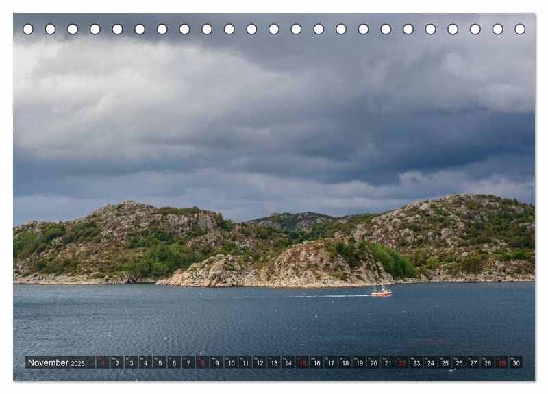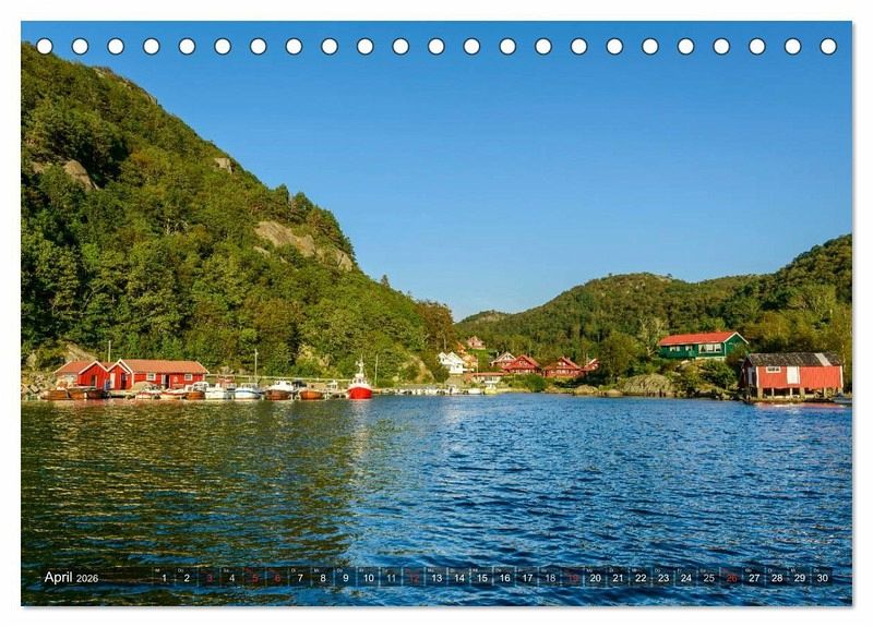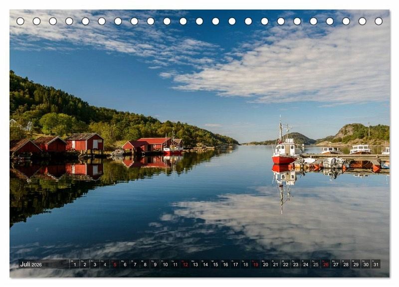 Entdecken Sie auf 13 Motiven die südlichste Region von Norwegen (Vest-Agder). Geprägt ist die Landschaft durch eine felsige Küste, malerische kleine Fischerhäfen und durch spiegelglatte Fjorde. Natürlich darf auch das Polarlicht in einem Norwegenkalender nicht fehlen.