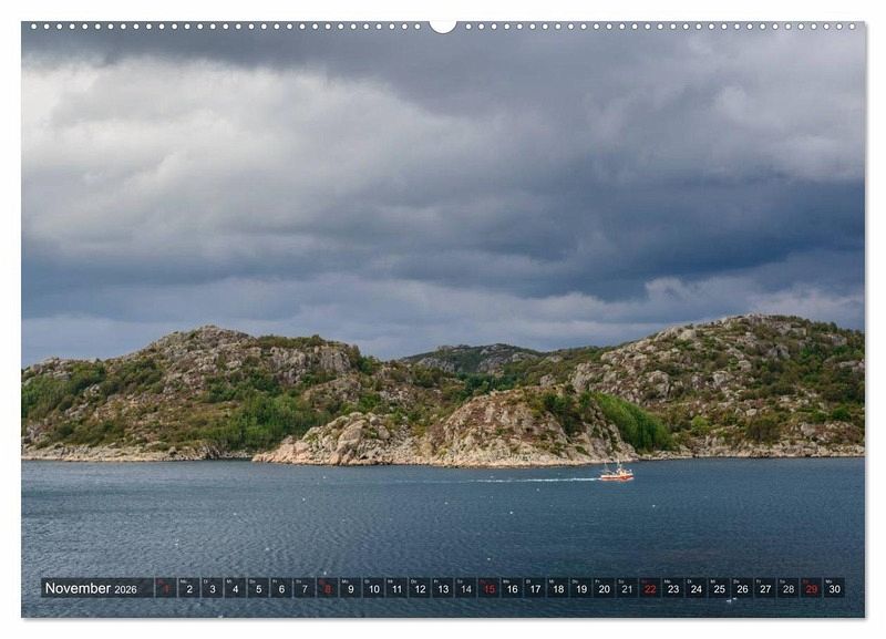 Entdecken Sie auf 13 Motiven die südlichste Region von Norwegen (Vest-Agder). Geprägt ist die Landschaft durch eine felsige Küste, malerische kleine Fischerhäfen und durch spiegelglatte Fjorde. Natürlich darf auch das Polarlicht in einem Norwegenkalender nicht fehlen.