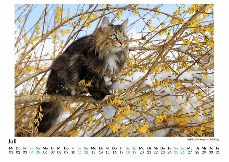 Entdecken Sie die majestätische Schönheit der Norwegischen Waldkatze in diesem exklusiven Wandkalender! Mit 12 atemberaubenden Motiven dieser faszinierenden Katzenrasse bringt jeder Monat die Eleganz und Anmut dieser Tiere in Ihr Zuhause. Gedruckt auf hochwertigem, lichtbeständigem Bilderdruckpapier, garantieren die brillanten Farben eine langanhaltende Freude. Nachhaltigkeit liegt uns am Herzen: Unsere Kalender werden in Deutschland auf FSC-zertifiziertem Papier produziert. Perfekt als Geschenk für Katzenliebhaber oder um sich selbst eine Freude zu machen - holen Sie sich die wilde Eleganz der Natur direkt an Ihre Wand! Hochwertig Erleben Sie ein Jahr voller Eleganz mit unserem Premium-Fotokalender. Jedes der 12 Motive ist auf hochwertigem, lichtbeständigem Bilderdruckpapier gedruckt, um die Lebendigkeit jedes Bildes zu bewahren. Die robuste Spiralbindung gewährleistet Langlebigkeit und einfache Handhabung. Nachhaltig Unser Engagement für die Umwelt spiegelt sich in jedem Exemplar wider. Durch die Produktion auf Abruf reduzieren wir signifikant unseren Abfall. Wir verwenden ausschließlich umweltfreundliches, FSC-zertifiziertes Papier. Stolz gefertigt in Deutschland, achten wir bei unserer Logistik auf Klimaschutz, um unseren ökologischen Fußabdruck zu minimieren. Das ideale Geschenk Dieser Kalender ist das perfekte Präsent für jeden Anlass - ob Weihnachten, Geburtstage oder einfach als liebevolle Aufmerksamkeit zwischendurch. Geeignet für Freunde, Familie, Kinder und Erwachsene gleichermaßen, bereichert er jedes Zuhause mit seiner Vielfalt und Schönheit, unabhängig vom Alter der Beschenkten.