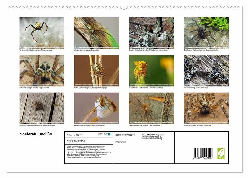 PREMIUM-LINIE - Brillanter Fotokalender mit 12 wunderschönen Motiven, Kunstdruck in Hochglanz in Museumsqualität.QUALITÄT - edle Materialien, stabile Rückwand mit 2 innovativen Einstecktaschen für eine optimale Präsentation an der Wand.NACHHALTIG - deutliche Abfallreduzierung durch bedarfsgerechte Einzelstückfertigung, umweltfreundliches FSC-zertifiziertes Papier, Produktion in Deutschland, klimabewusste Logistik.PERFEKTES GESCHENK - Kalender für Freunde und Familie, für Kinder und Erwachsene, jung und alt, zu Weihnachten, Geburtstag oder zwischendurch.Außergewöhnlich detaillierte Nahaufnahmen von europäischen Spinnen von Autor(in): Wolfgang Kairat