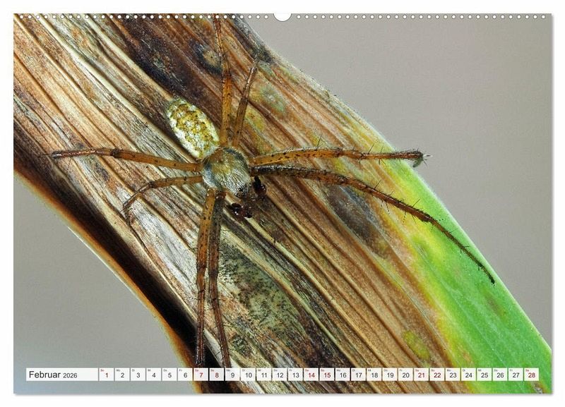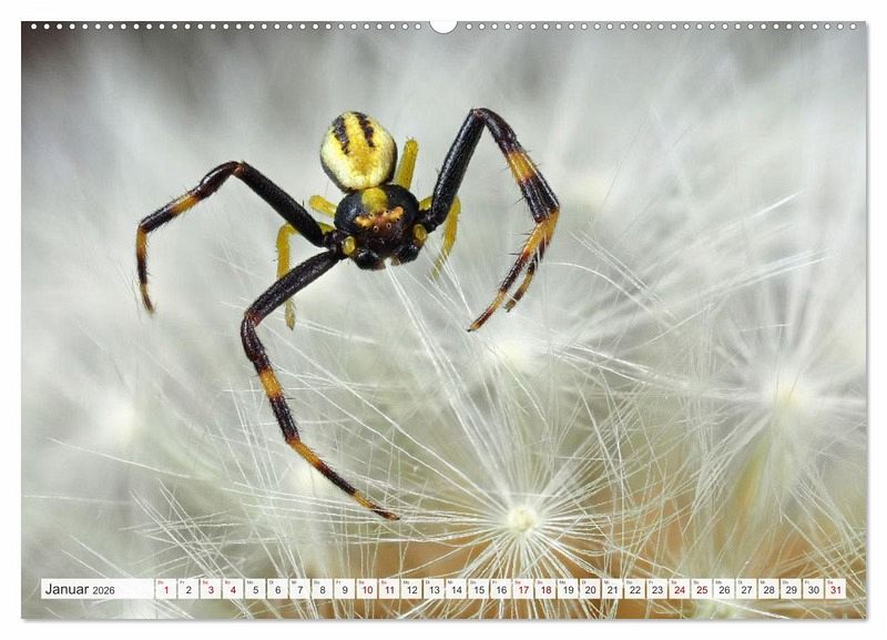 In diesem Kalender finden Sie zwölf wunderschöne Fotos europäischer Spinnenarten, von der kleinen Springspinne bis zur großen Nosferatu - jede Spinne hat ihren eigenen Charme.