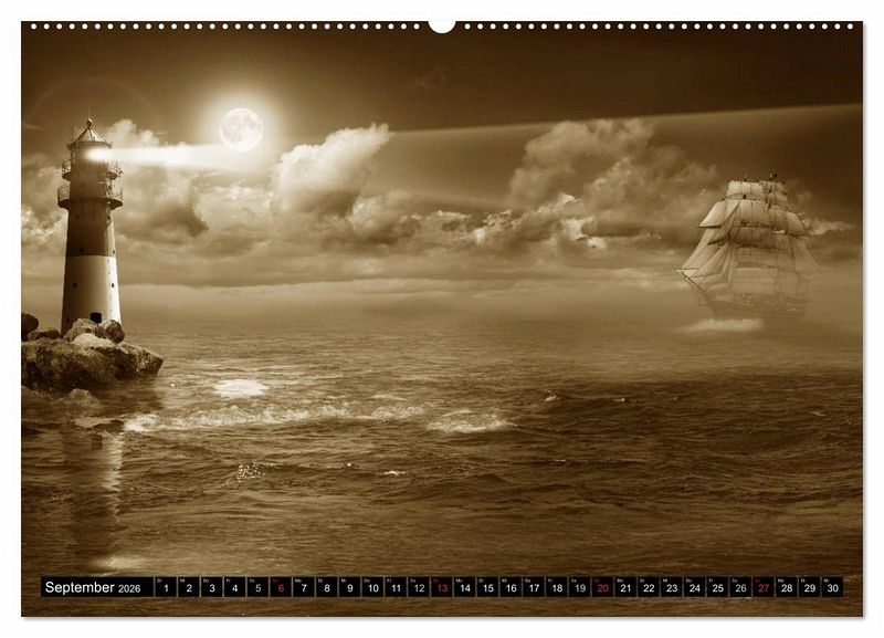 September: Segelschiff unter Leuchtfeuer