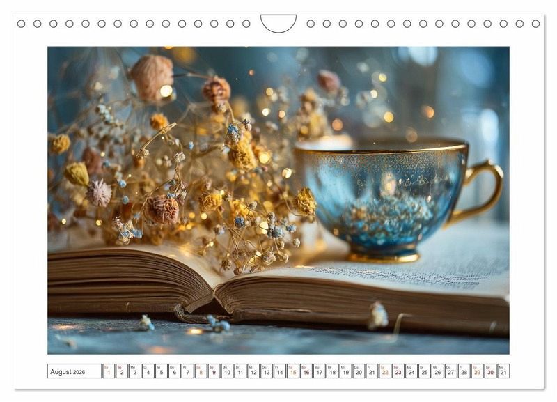 Willkommen in einem Jahr voll Teemagie und leiser Eleganz. Dieser Kalender erzählt in zwölf Szenen von kostbaren Augenblicken, vom Dampf über Tassenrändern bis zum Glanz auf feinem Porzellan. Jede Jahreszeit hat ihren eigenen Duft, ihre eigene Farbe, ihren eigenen Tee. Winter schmeckt nach Zimt und Ruhe, Frühling nach Rosen und Hoffnung, Sommer nach Zitronen und Licht, Herbst nach Honig und Sehnsucht. Alle hier gezeigten Bilder wurden mit Sorgfalt, Liebe und mit Hilfe einer KI generiert. Abschließend werden sie mit Bildbearbeitungsprogrammen überarbeitet und in den Kalender eingefügt.