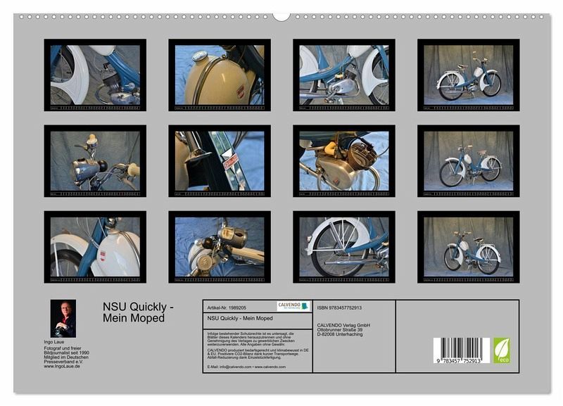 Das oder auch die Quickly war zu seinen Zeiten, wie auch heute, ein begehrtes Moped von Jung und Alt. Ein berühmter Werbespruch von damals "wohl dem, der ein Quickly hat", ist natürlich heute noch aktuell. Dieser Kalender ist eine Hommage an eins der berühmtesten Mopeds der deutschen Nachkriegsgeschichte.