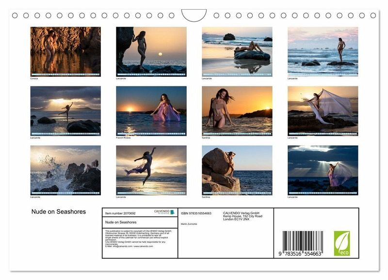 QUALITY - High-quality photo calendar with 12 beautiful images on light-resistant paper, robust spiral binding with hanger.SUSTAINABLE - Significant waste reduction due to print-on-demand production, environmentally friendly FSC-certified paper, produced in the UK, climate-conscious logistical processes.PERFECT GIFT - Calendars for grown-ups - friends and family - and for all occasions, from Christmas to birthdays and everything in between.LOTS OF CHOICE - Wall calendars in different sizes (DIN A4 and DIN A3), for any topic and personal taste, featuring photography, painting and illustrations.Nude photography on beautiful seashores around the world, author: Julia Zurmühle-Zwinggi