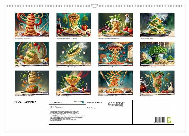 QUALITÄT - Hochwertiger Fotokalender mit 12 wunderschönen Motiven auf lichtbeständigem Bilderdruckpapier, robuste Spiralbindung mit Aufhängebügel.NACHHALTIG - deutliche Abfallreduzierung durch bedarfsgerechte Einzelstückfertigung, umweltfreundliches FSC-zertifiziertes Papier, Produktion in Deutschland, klimabewusste Logistik.PERFEKTES GESCHENK - Kalender für Freunde und Familie, für Kinder und Erwachsene, jung und alt, zu Weihnachten, Geburtstag oder zwischendurch.PERFEKTES GESCHENK - Kalender für Freunde und Familie, für Erwachsene, zu Weihnachten, Geburtstag oder zwischendurch.Nudelgerichte mal anders serviert, mit Soße oder Gemüse und Kräuter von Autor(in): Marlise Gaudig