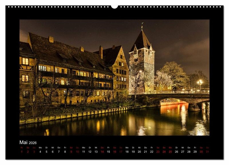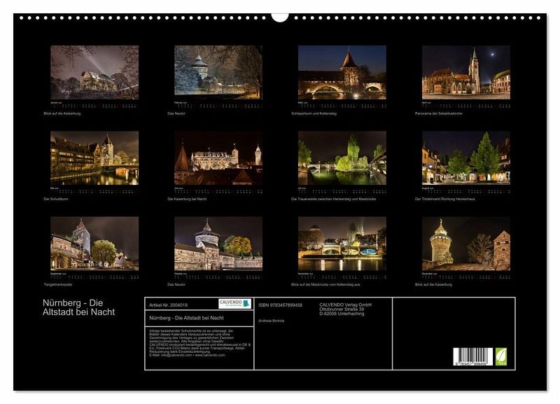 Auf 12 beeindruckenden Bildern zeigt der Kalender einige der vielen Wahrzeichen Nürnbergs. Die stimmungsvollen Nachtaufnahmen zeigen die Altstadt von einer eher ungewöhnlichen Seite.