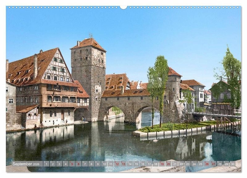 Die schöne Stadt Nürnberg hat eine interessante Geschichte und war früher schon eines der bedeutendsten kulturellen Zentren der Renaissance nördlich der Alpen sowie des Humanismus und der Reformation. Geprägt ist das Stadtbild von mittelalterlicher Architektur wie den Festungsmauern und Türmen der Altstadt mit Blick auf die prächtige Kaiserburg, und war auch in den Jahren 1890 bis 1915 bunt und voller Leben. Diese schönen, farblich restaurierten und nachkolorierten Fotografien sollen einen besonderen Einblick in den Alltag der Menschen und bekannte Orte zur Kaiserzeit geben, auch wenn es in diesem Kalender nur eine kleine Auswahl an Örtlichkeiten ist. Aber nie war diese alte Zeit so lebendig. Eine Zeitreise in Bildern.