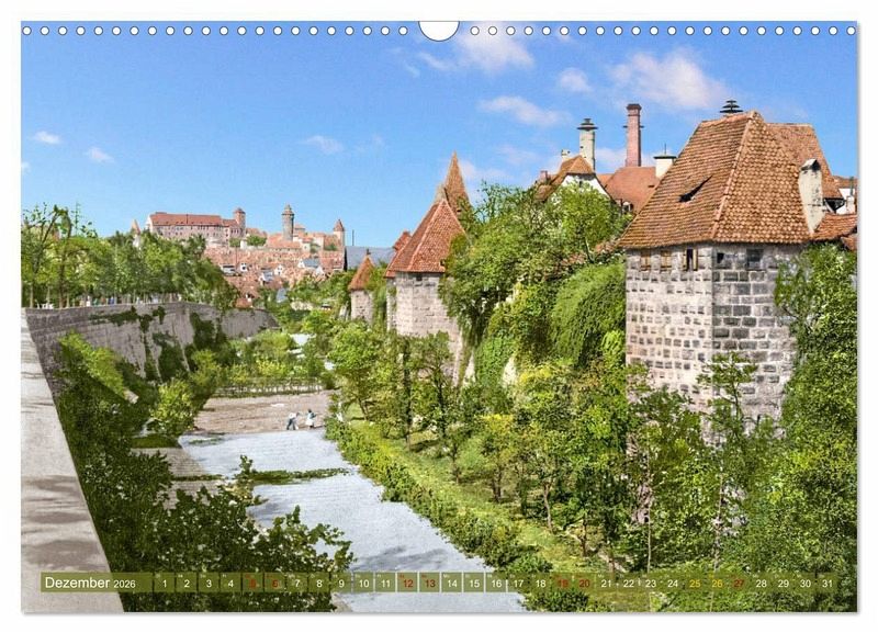Die schöne Stadt Nürnberg hat eine interessante Geschichte und war früher schon eines der bedeutendsten kulturellen Zentren der Renaissance nördlich der Alpen sowie des Humanismus und der Reformation. Geprägt ist das Stadtbild von mittelalterlicher Architektur wie den Festungsmauern und Türmen der Altstadt mit Blick auf die prächtige Kaiserburg, und war auch in den Jahren 1890 bis 1915 bunt und voller Leben. Diese schönen, farblich restaurierten und nachkolorierten Fotografien sollen einen besonderen Einblick in den Alltag der Menschen und bekannte Orte zur Kaiserzeit geben, auch wenn es in diesem Kalender nur eine kleine Auswahl an Örtlichkeiten ist. Aber nie war diese alte Zeit so lebendig. Eine Zeitreise in Bildern.