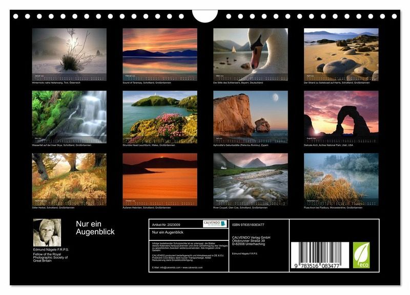 QUALITÄT - Hochwertiger Fotokalender mit 12 wunderschönen Motiven auf lichtbeständigem Bilderdruckpapier, robuste Spiralbindung mit Aufhängebügel.NACHHALTIG - deutliche Abfallreduzierung durch bedarfsgerechte Einzelstückfertigung, umweltfreundliches FSC-zertifiziertes Papier, Produktion in Deutschland, klimabewusste Logistik.PERFEKTES GESCHENK - Kalender für Freunde und Familie, für Kinder und Erwachsene, jung und alt, zu Weihnachten, Geburtstag oder zwischendurch.VIELFALT - Bildkalender in verschiedenen Formaten, z.B. DIN A5, DIN A4, DIN A3 sowie DIN A2. Ob Naturmotiv, Gemälde oder Fotos, ideal für ein persönliches Wohlfühlambiente.Augenblicke die man nicht vergisst, fotografiert von Edmund Nägele F.R.P.S. von Autor(in): Edmund Nägele