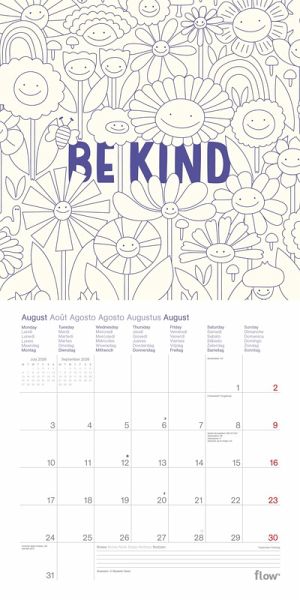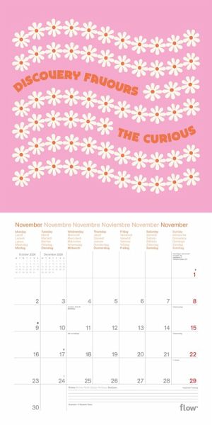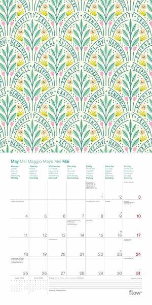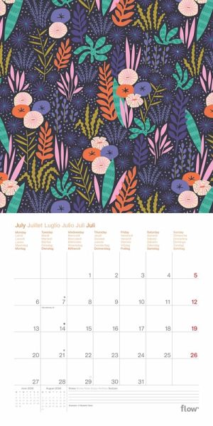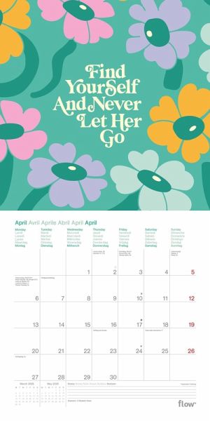 Ansprechendes Design: Stilvolles Flow-Design mit 12 künstlerisch gestalteten Motiven und inspirierenden Affirmationen ideal für alle, die Wert auf ein elegantes und individuelles Äußeres legenUmfassende Organisation: 12 Monatsblätter mit großem Notizkalendarium perfekt für Terminplanung, Eintragungen und GedankenÜbersichtliche Monatsansicht: Klare Struktur mit hervorgehobenen Monatsziffern für schnellen Überblick über Termine, Veranstaltungen und FristenInternational nutzbar: Kalendarium mit allen wichtigen Feiertagen in Deutschland, Österreich und der Schweiz praktisch auch für internationale KontakteHandliches Format: Broschürenkalender im Format 30 x 30 cm (aufgeklappt 30 x 60 cm) dekorativ und gleichzeitig platzsparend für Zuhause, Büro oder als Geschenk