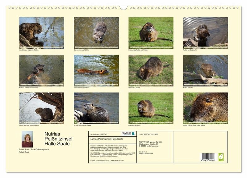 QUALITÄT - Hochwertiger Fotokalender mit 12 wunderschönen Motiven auf lichtbeständigem Bilderdruckpapier, robuste Spiralbindung mit Aufhängebügel.NACHHALTIG - deutliche Abfallreduzierung durch bedarfsgerechte Einzelstückfertigung, umweltfreundliches FSC-zertifiziertes Papier, Produktion in Deutschland, klimabewusste Logistik.PERFEKTES GESCHENK - Kalender für Freunde und Familie, für Kinder und Erwachsene, jung und alt, zu Weihnachten, Geburtstag oder zwischendurch.VIELFALT - Bildkalender in verschiedenen Formaten, z.B. DIN A5, DIN A4, DIN A3 sowie DIN A2. Ob Naturmotiv, Gemälde oder Fotos, ideal für ein persönliches Wohlfühlambiente.Die Nutria in freier Wildbahn auf der Peißnitzinsel Halle Saale von Autor(in): Babett's Bildergalerie
