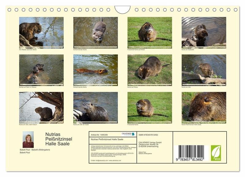 QUALITÄT - Hochwertiger Fotokalender mit 12 wunderschönen Motiven auf lichtbeständigem Bilderdruckpapier, robuste Spiralbindung mit Aufhängebügel.NACHHALTIG - deutliche Abfallreduzierung durch bedarfsgerechte Einzelstückfertigung, umweltfreundliches FSC-zertifiziertes Papier, Produktion in Deutschland, klimabewusste Logistik.PERFEKTES GESCHENK - Kalender für Freunde und Familie, für Kinder und Erwachsene, jung und alt, zu Weihnachten, Geburtstag oder zwischendurch.VIELFALT - Bildkalender in verschiedenen Formaten, z.B. DIN A5, DIN A4, DIN A3 sowie DIN A2. Ob Naturmotiv, Gemälde oder Fotos, ideal für ein persönliches Wohlfühlambiente.Die Nutria in freier Wildbahn auf der Peißnitzinsel Halle Saale von Autor(in): Babett's Bildergalerie